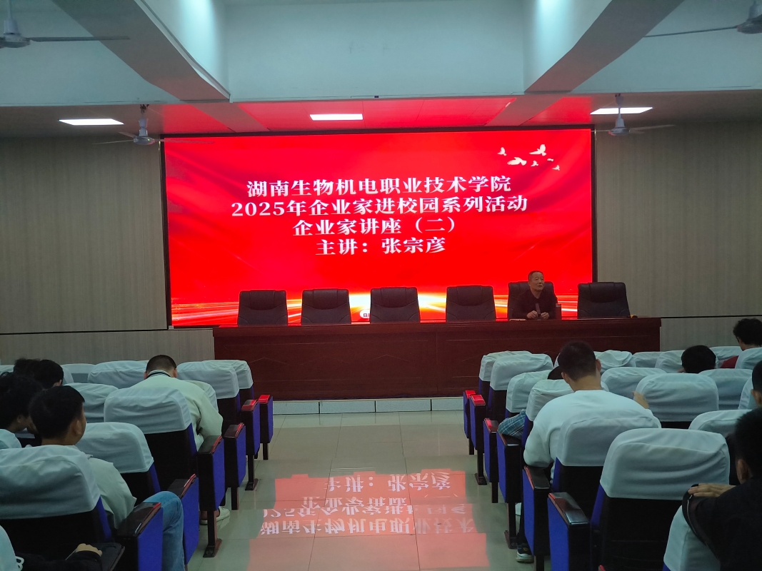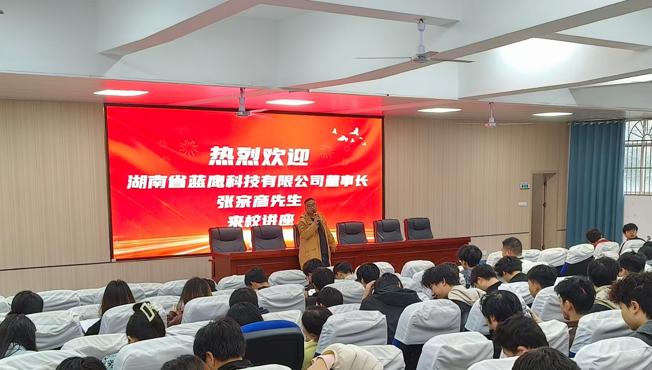 2025年10月21日下午,机电工程学院“企业家进校园”系列讲座第二场在机电大楼学术报告厅举行。学院特邀湖南省蓝鹰科技有限公司董事长张宗彦作专题分享。学院就业专干黄磊与200余名学生共同参加讲座。