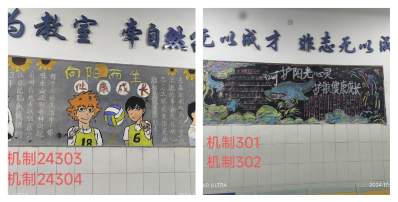 为了让同学们更加清楚地认识心理健康的重要性的同时,更快的在同学们之间普及关于心理健康知识,10月21日,配合校心理中心举办"呵护阳光心灵 护航健康成长"的主题黑板报评比活动,并且通过多途径的宣传教育,让广大学生们掌握精神卫生、心理健康相关知识。