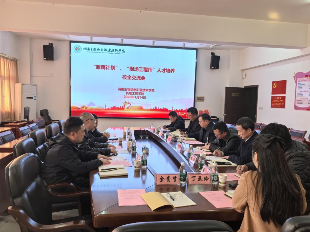 为深化人才培养质量,推动校企协同发展,2026年1月14日下午,机电工程学院邀请蓝思科技、博众精工的隋明、张敏三、柳科、陈宇航等专家,在马坡岭校区秀实楼4003召开“雏鹰计划”“现场工程师”人才培养校企交流会。学校党委书记毛祥成,党委委员、副校长何荣誉,机电工程学院院长廉良冲及全体班子成员参加了会议,会议由机电工程学院党总支书记刘林主持。